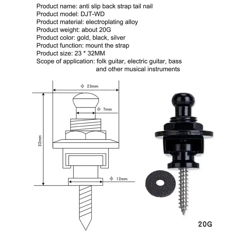 Guitar Strap Lock Guitar Strap Buckle Anti Detachment Folk Wooden Guitar Tail Nail Metal Electric Guitar Strap Buckle
