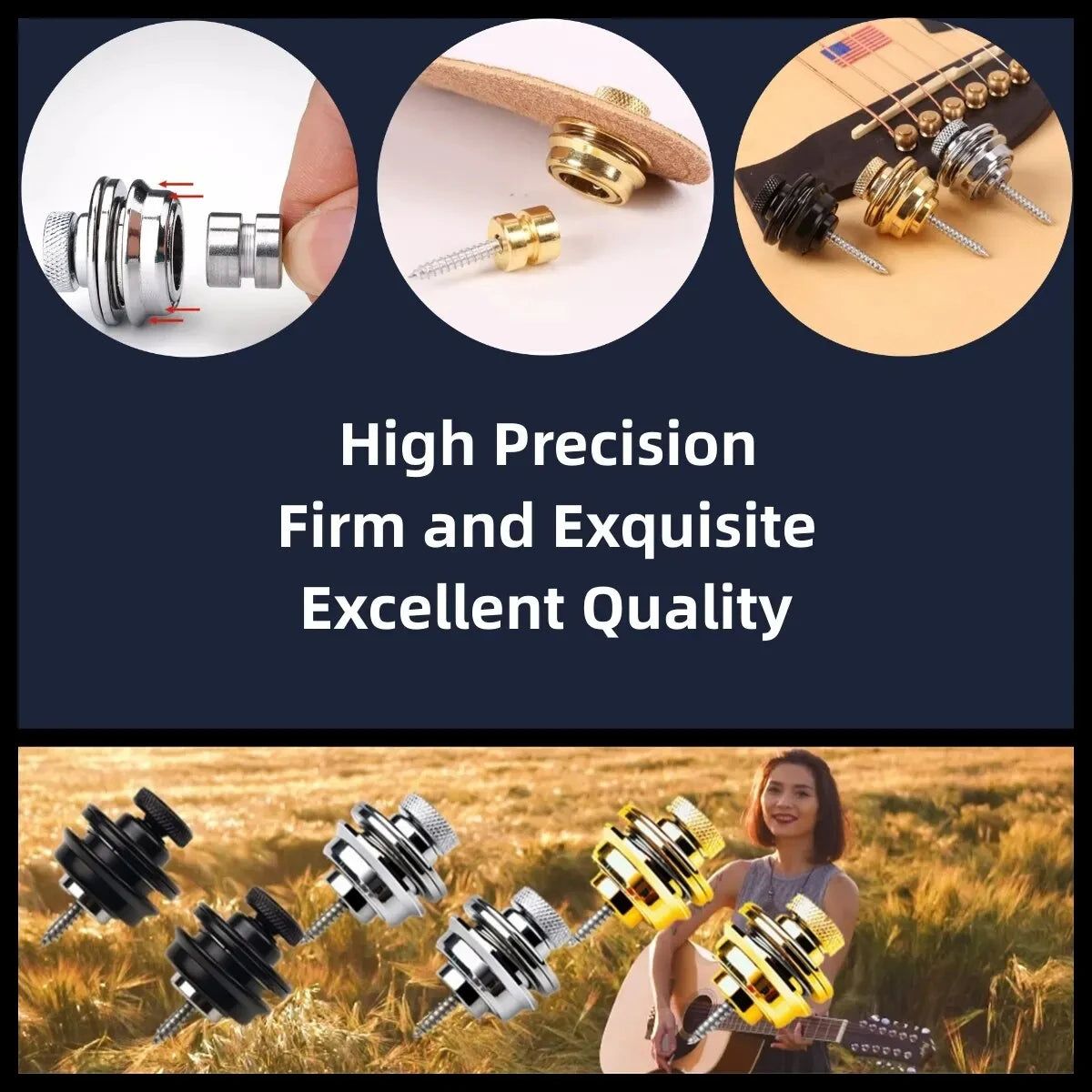 Miwayer Guitar strap lock, sturdy metal button, safety strap for electric acoustic guitar, bass, ukulele (size L), 1 unit