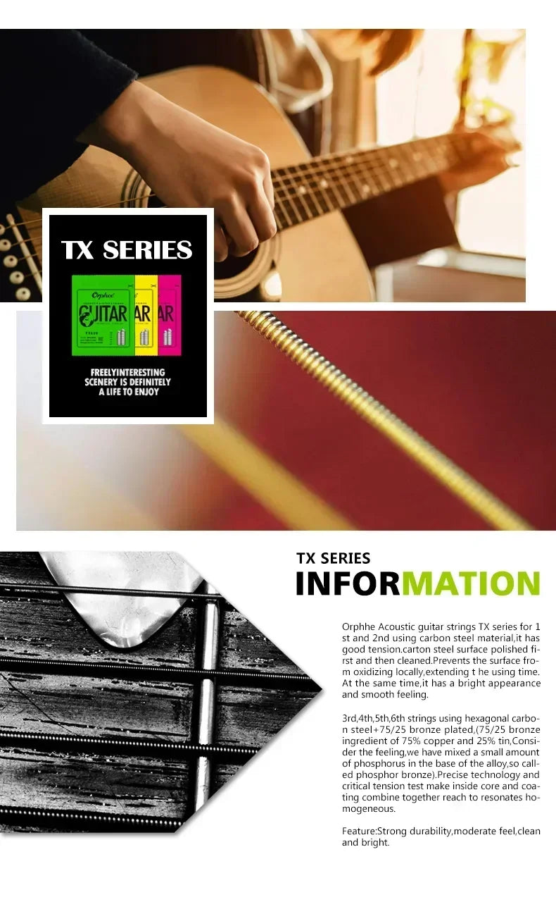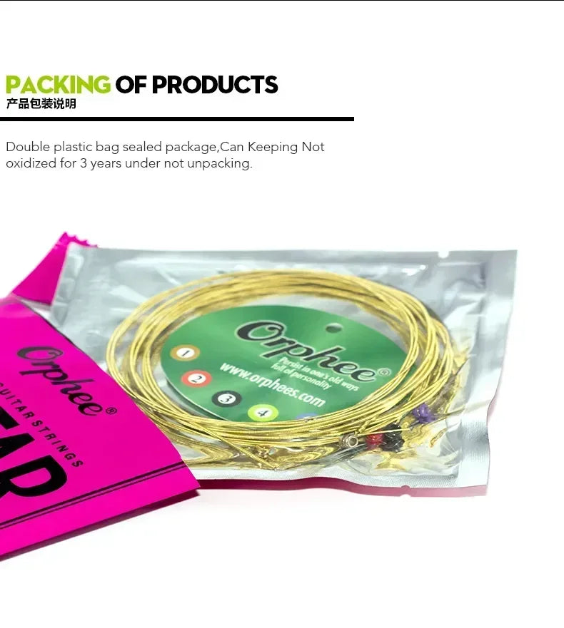 Orphee Acoustic Guitar String Carbon Steel Hexagonal Core Full Bright Tone Stringed Instrument Guitar Parts Folk Guitar String