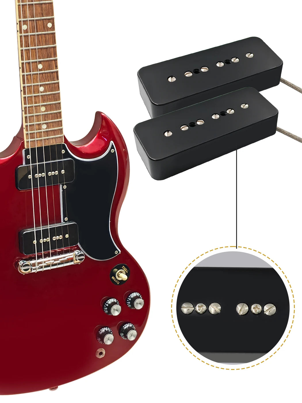 Phrilam ProP90-BLA High output Alnico5 P90 Soapbar Single Coil Pickup for Les Paul LP SG Electric Guitar Neck Bridge Pickups Set